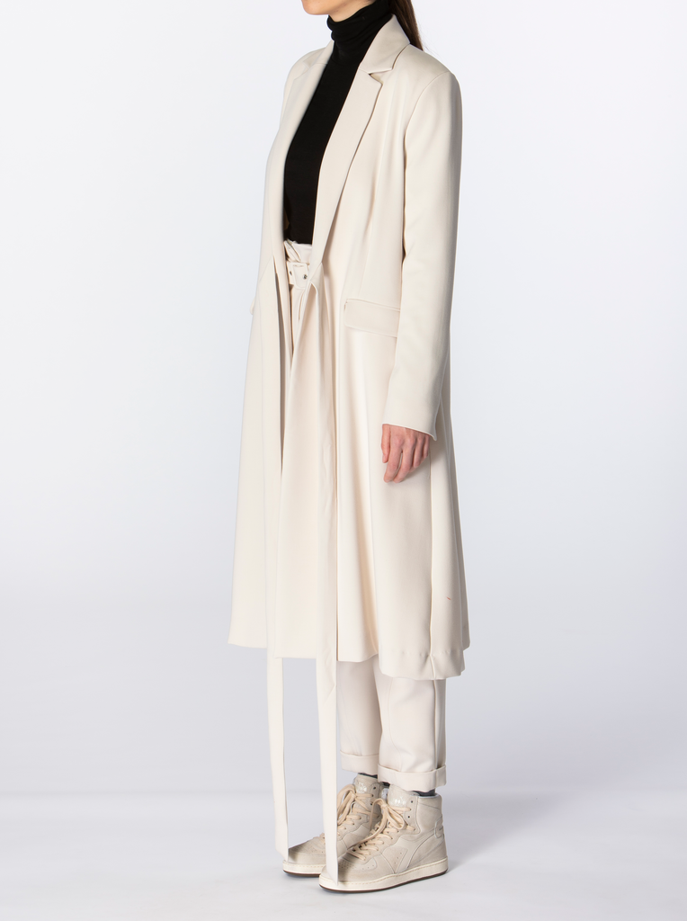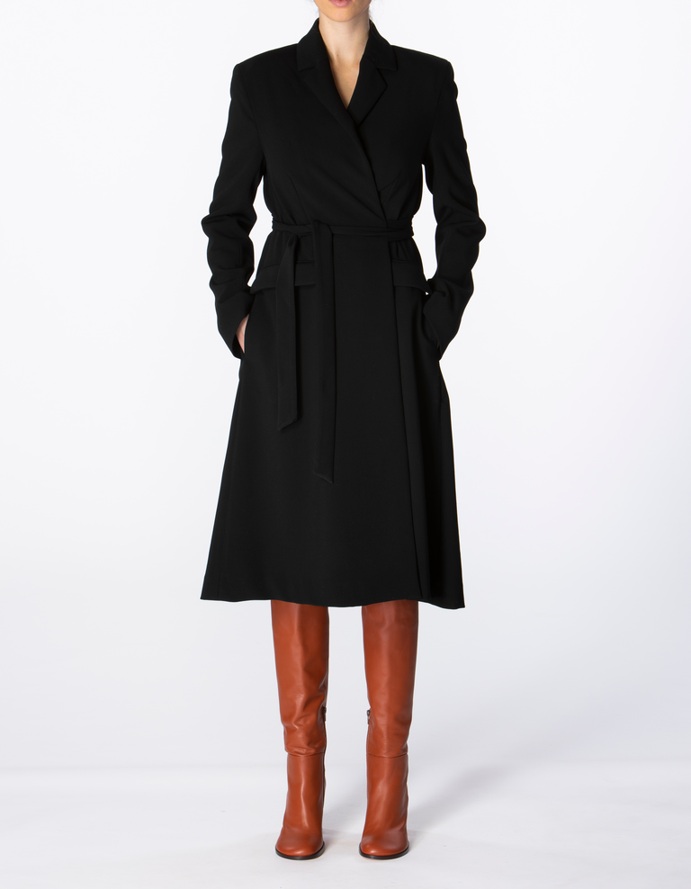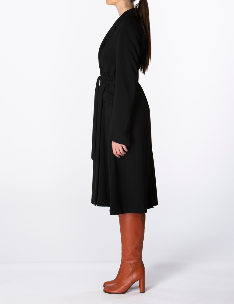 Re-invent your own wardrobe by wearing your favourite piece in multiple ways. This dress is designed to adapt it to your own style or specific occasion. Wear it belted as a wrap style dress, or leave the lapel collar design open as a coat to create a layered look.